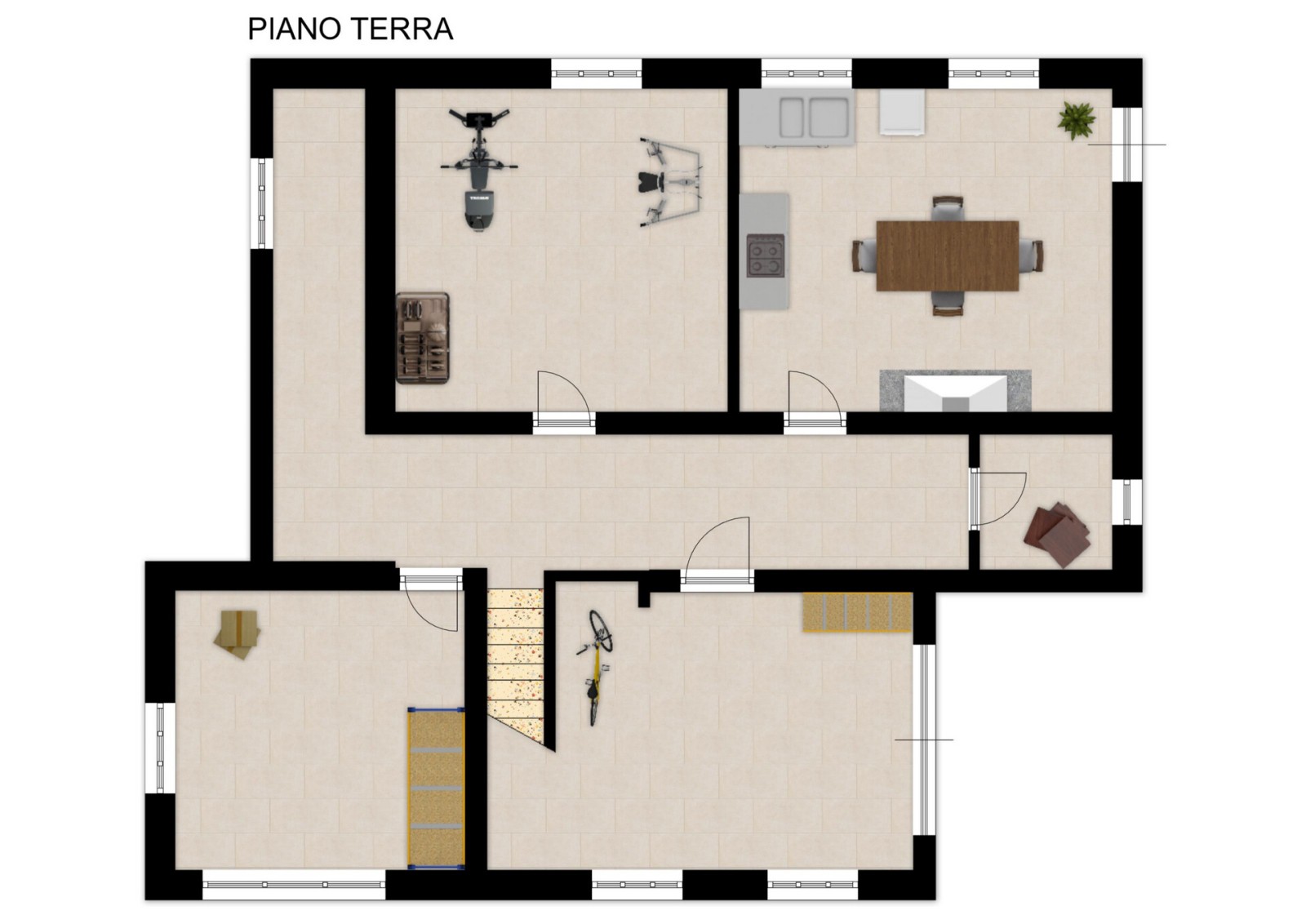 Nel seminterrato trovi una cantina articolata in più ambienti con accesso diretto sia all’area esterna sia all’autorimessa: uno di quegli ambienti che diventano officina per hobby, deposito per biciclette, dispensa o semplicemente il luogo dove organizzare tutto senza rinunce.