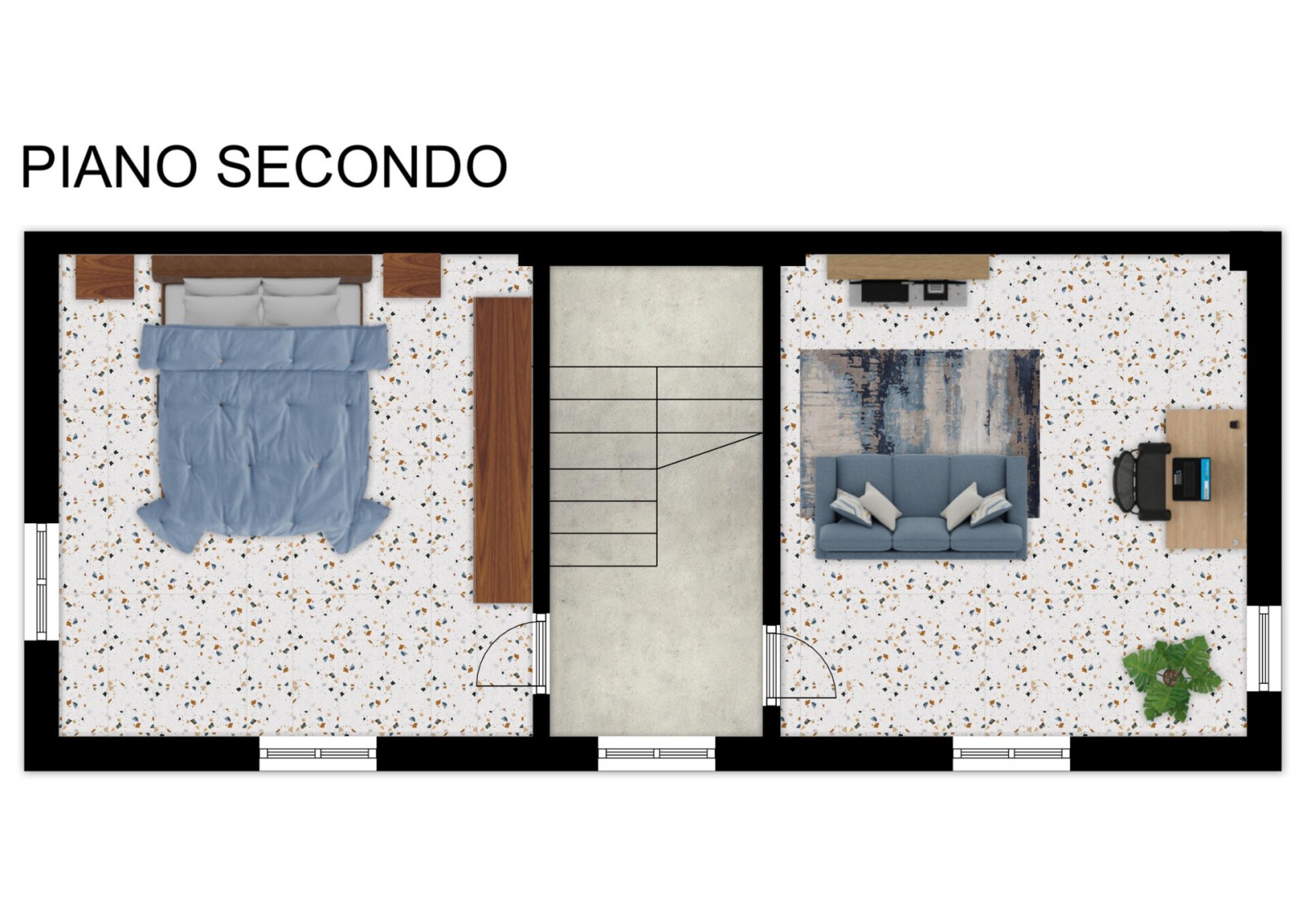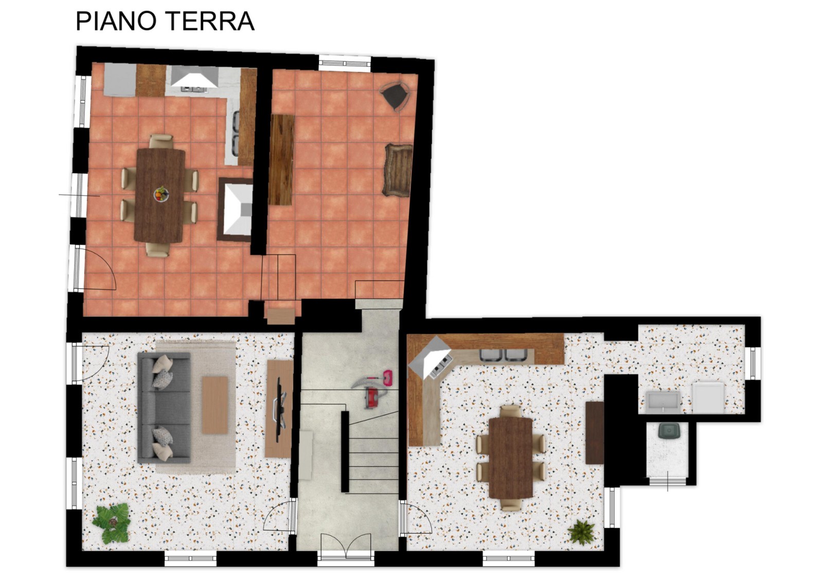 L’abitazione si sviluppa su due livelli e offre metrature generose. Al piano terra trovi un soggiorno accogliente, una cucina abitabile dove riunire la famiglia, un bagno e due stanze aggiuntive, di cui una utilizzata come taverna con caminetto: uno spazio perfetto per cene conviviali, momenti di relax o per creare un ambiente dedicato ai ragazzi.