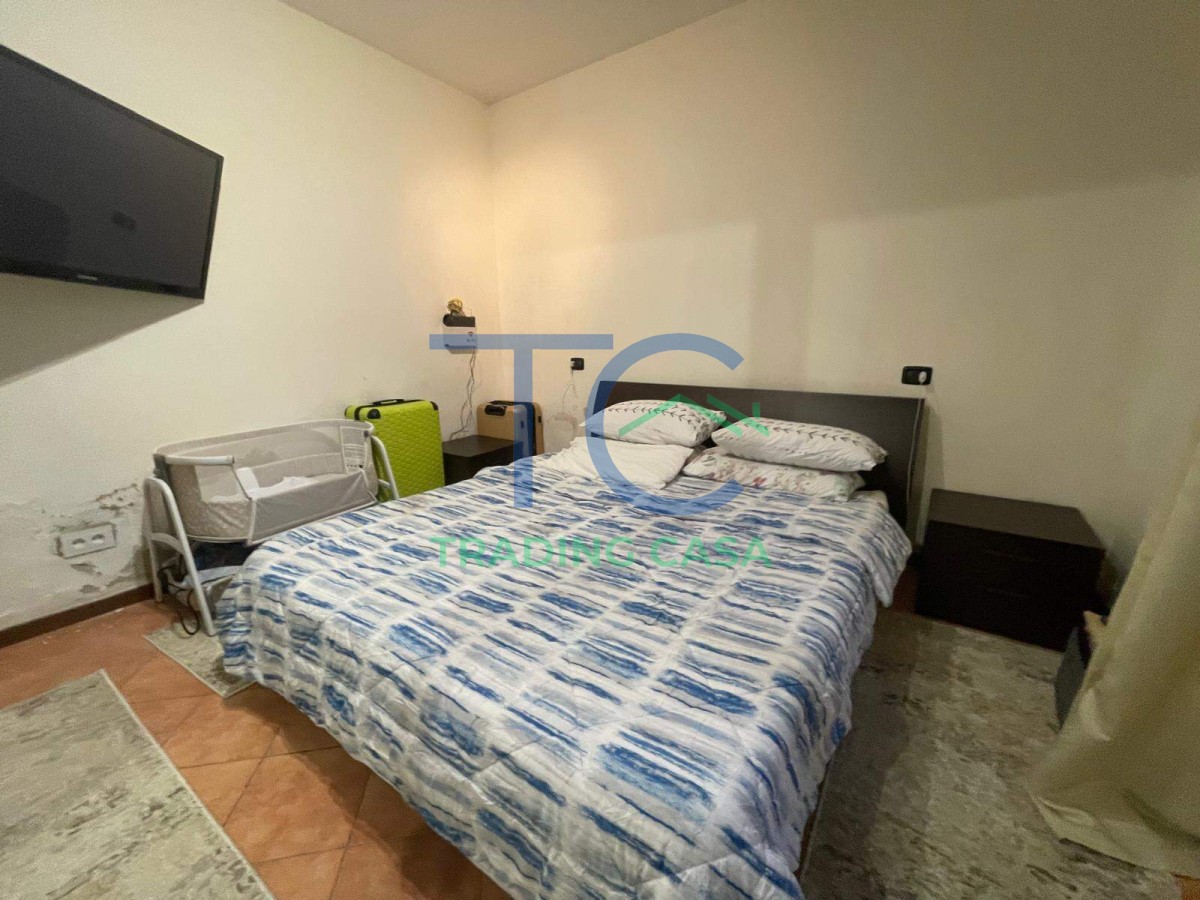 La camera matrimoniale regala silenzio e privacy, lo spazio giusto per staccare davvero. Il bagno è funzionale, pronto all’uso. E poi c’è il valore che cambia tutto: il giardino di proprietà, uno sfogo reale dove respirare, far giocare un bambino, goderti una cena all’aperto o semplicemente rilassarti a fine giornata.