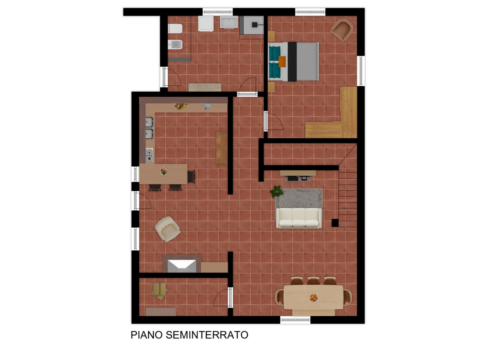 Il piano seminterrato è una vera risorsa: una grande taverna con zona cucina, una camera aggiuntiva, bagno/lavanderia, cantina e autorimessa. Spazi pensati per ogni esigenza della vita quotidiana.