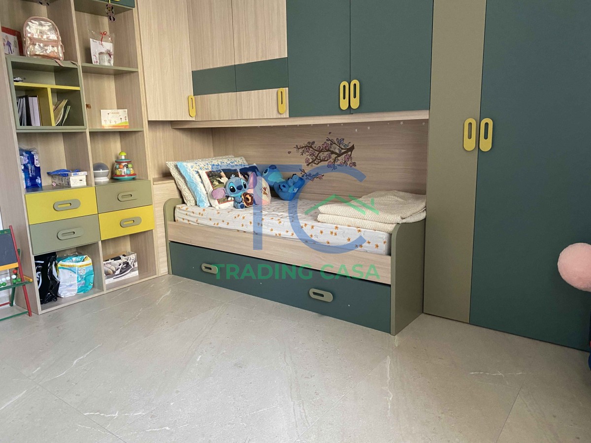 Siamo al secondo piano di una palazzina curata di soli tre livelli, dove il cappotto esterno è stato rifatto da poco. Appena entri, l’ingresso ti accompagna verso una cucina luminosa e verso un soggiorno separato che diventa il cuore della vita quotidiana: conversazioni, giochi, serate tranquille. I due balconi portano aria e luce, creando un dialogo continuo con l’esterno.