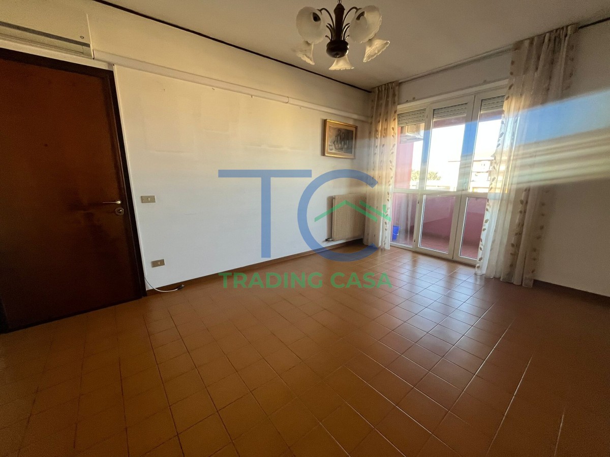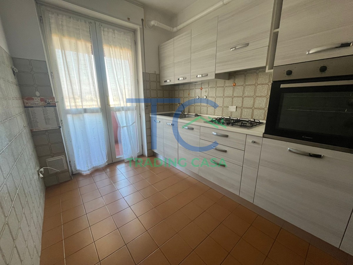 Situato a un piano alto servito da ascensore, l’appartamento offre una distribuzione interna equilibrata e funzionale. L’ingresso accompagna verso il soggiorno, uno spazio accogliente dove ritrovarsi a fine giornata, mentre la cucina semi abitabile è pratica e già arredata, pronta per essere utilizzata fin da subito.