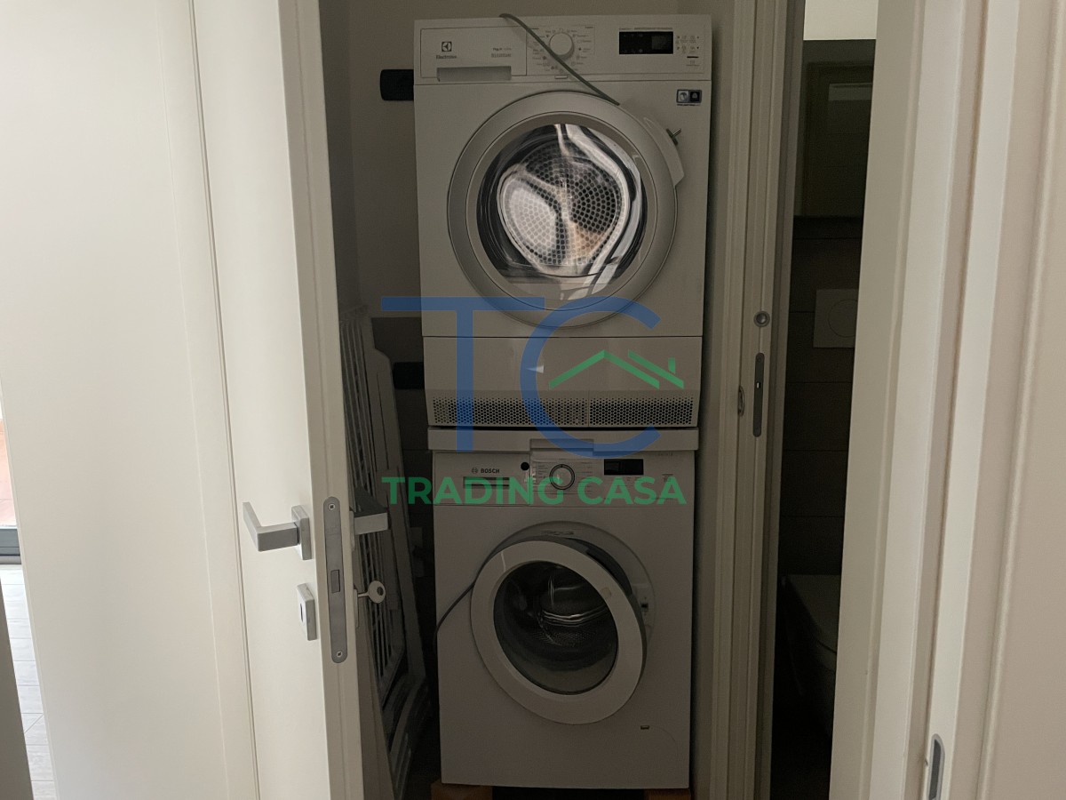 La zona notte è composta da una camera matrimoniale comoda e da una camera singola versatile, ideale come stanza per un figlio, studio o ambiente jolly. Il bagno è moderno e ben rifinito, mentre il ripostiglio con lavatrice e asciugatrice aggiunge una comodità concreta alla gestione di ogni giorno.
