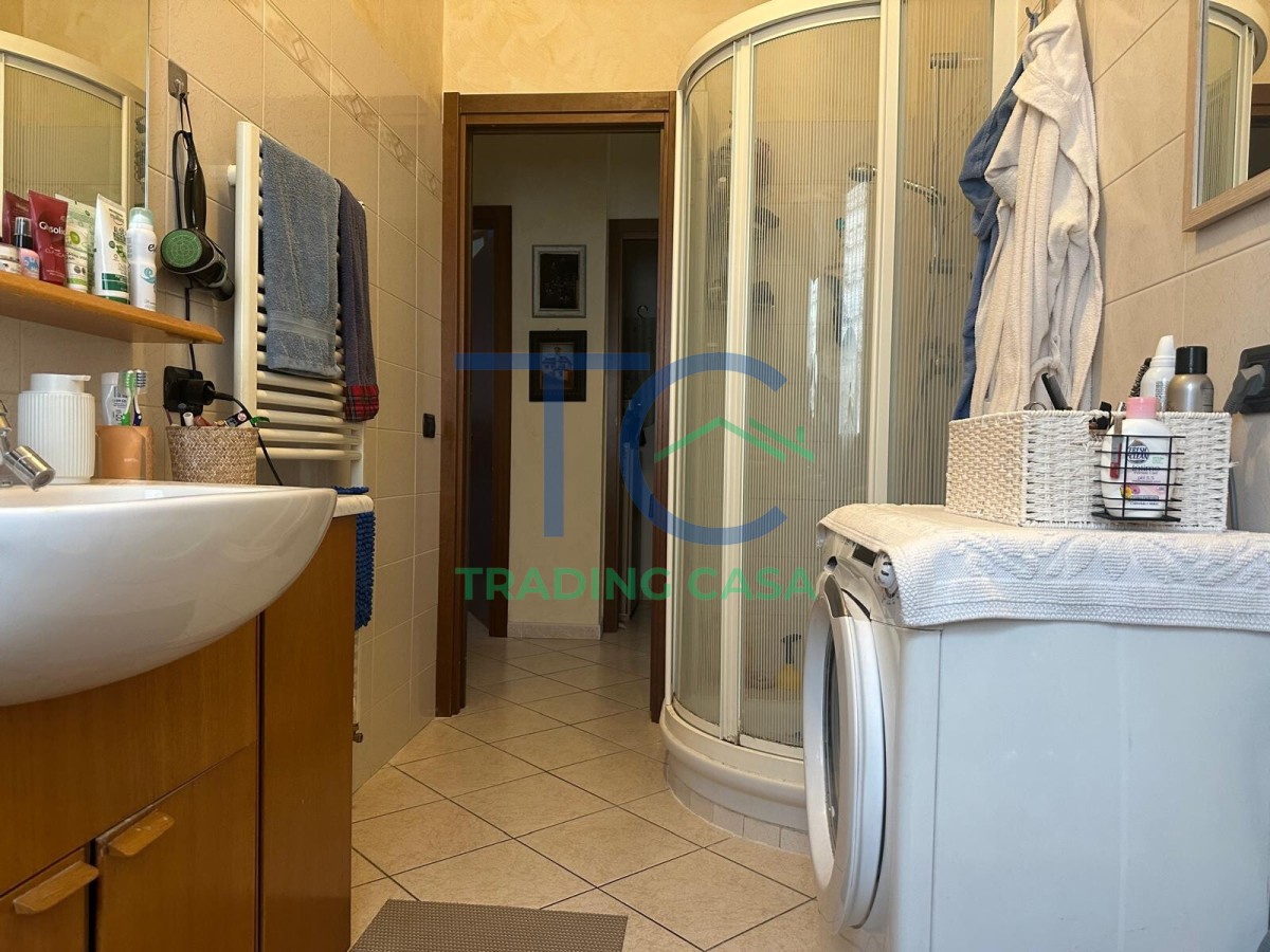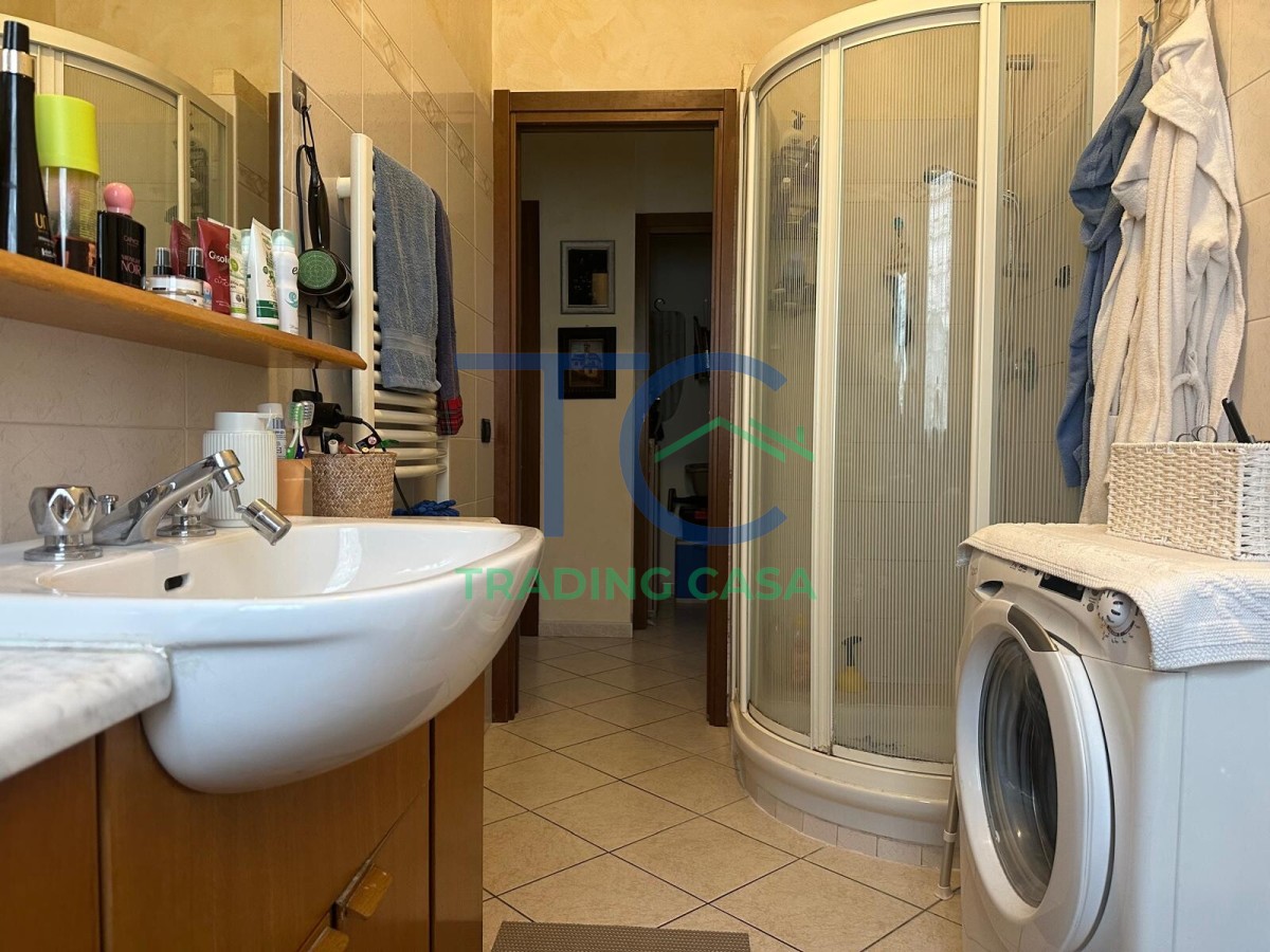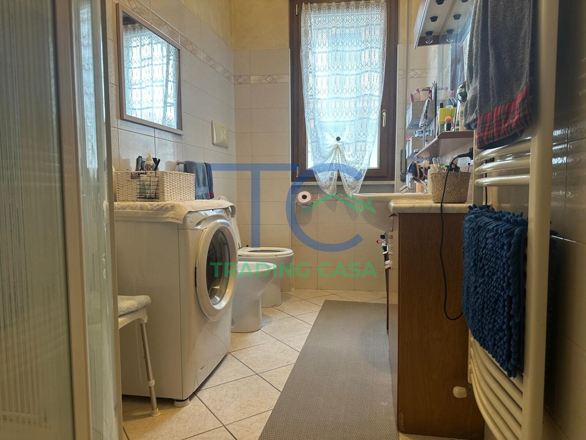 Il bagno è funzionale e ben organizzato, mentre il ripostiglio utilizzato come lavanderia risolve in modo intelligente la gestione quotidiana, tenendo tutto in ordine e fuori vista.