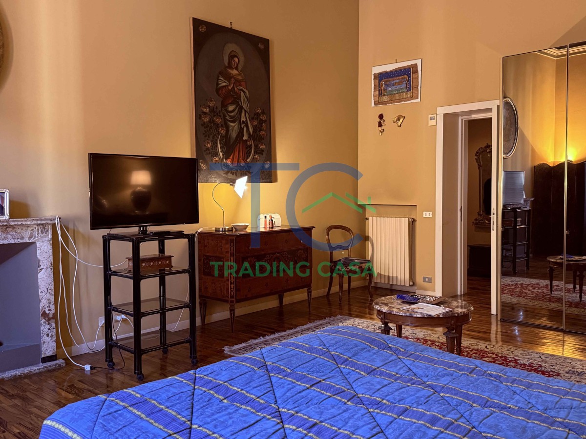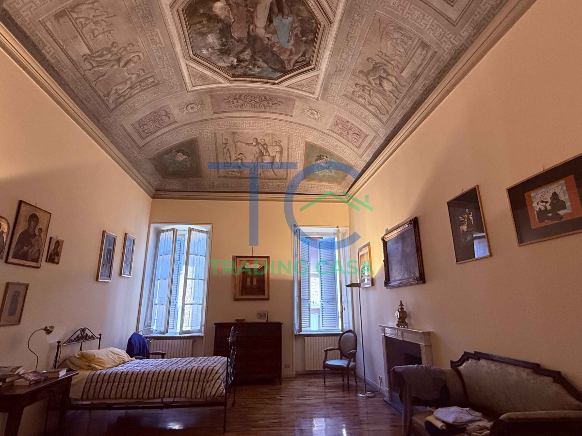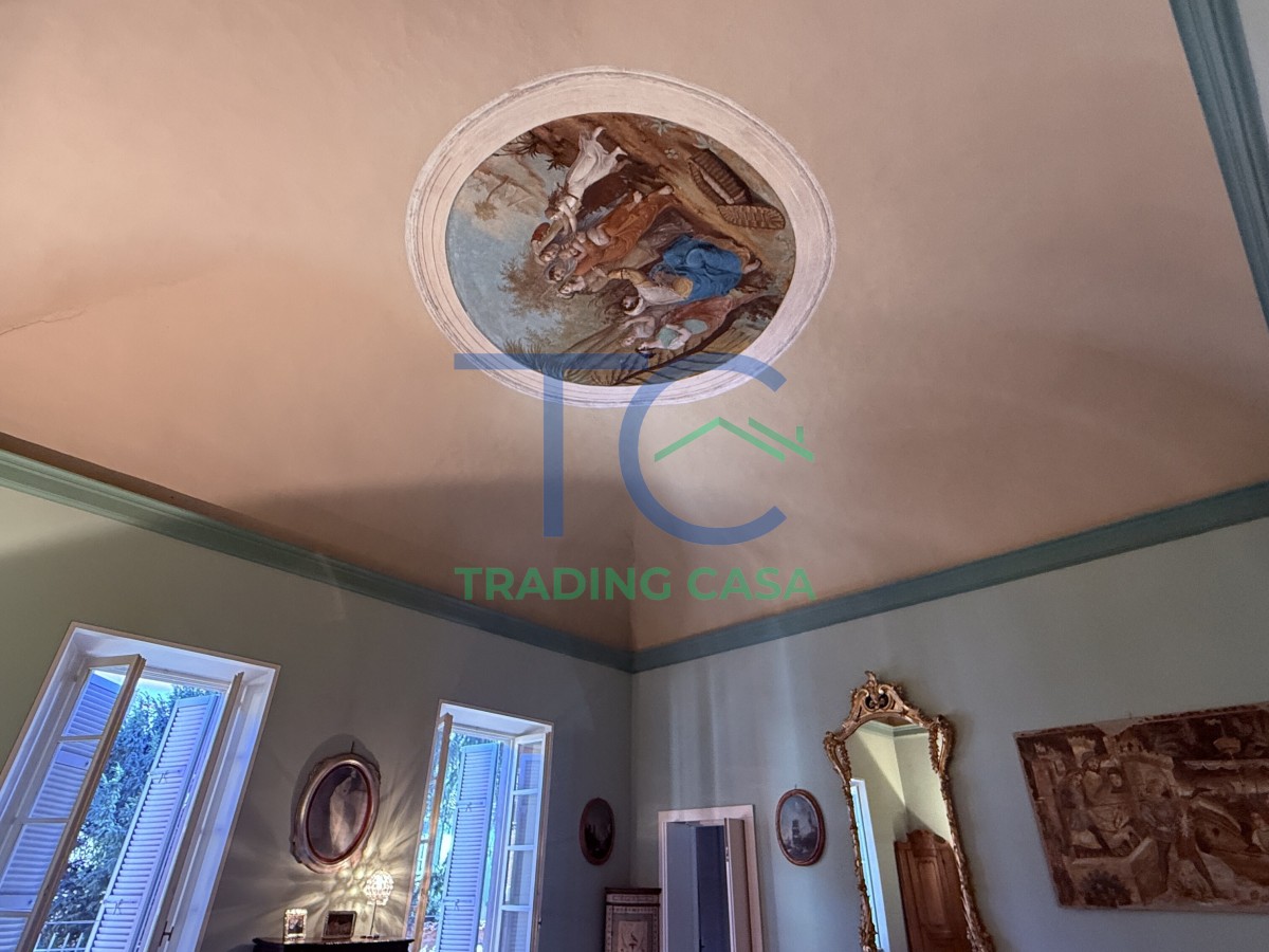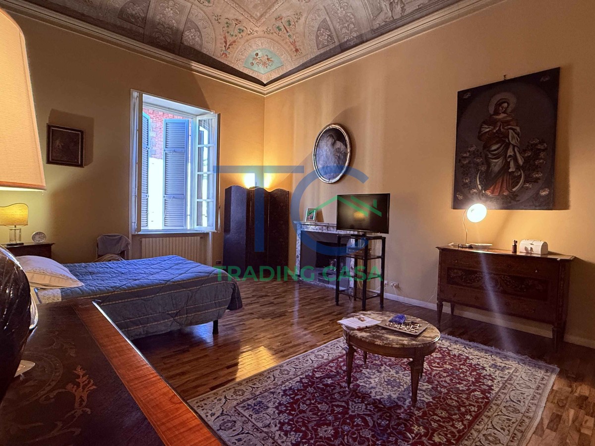 La zona notte è raggiunta da un corridoio in parquet che accompagna verso due camere da letto importanti, dove il tempo sembra rallentare. Qui il silenzio ha un altro suono. Gli affreschi, i camini, il calore del legno sotto i piedi: ogni elemento contribuisce a creare un senso di casa profondo e rassicurante.
