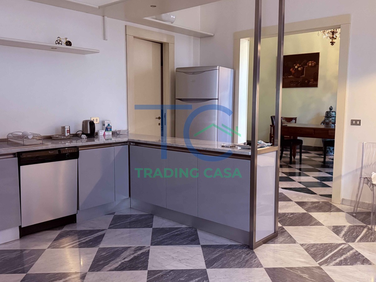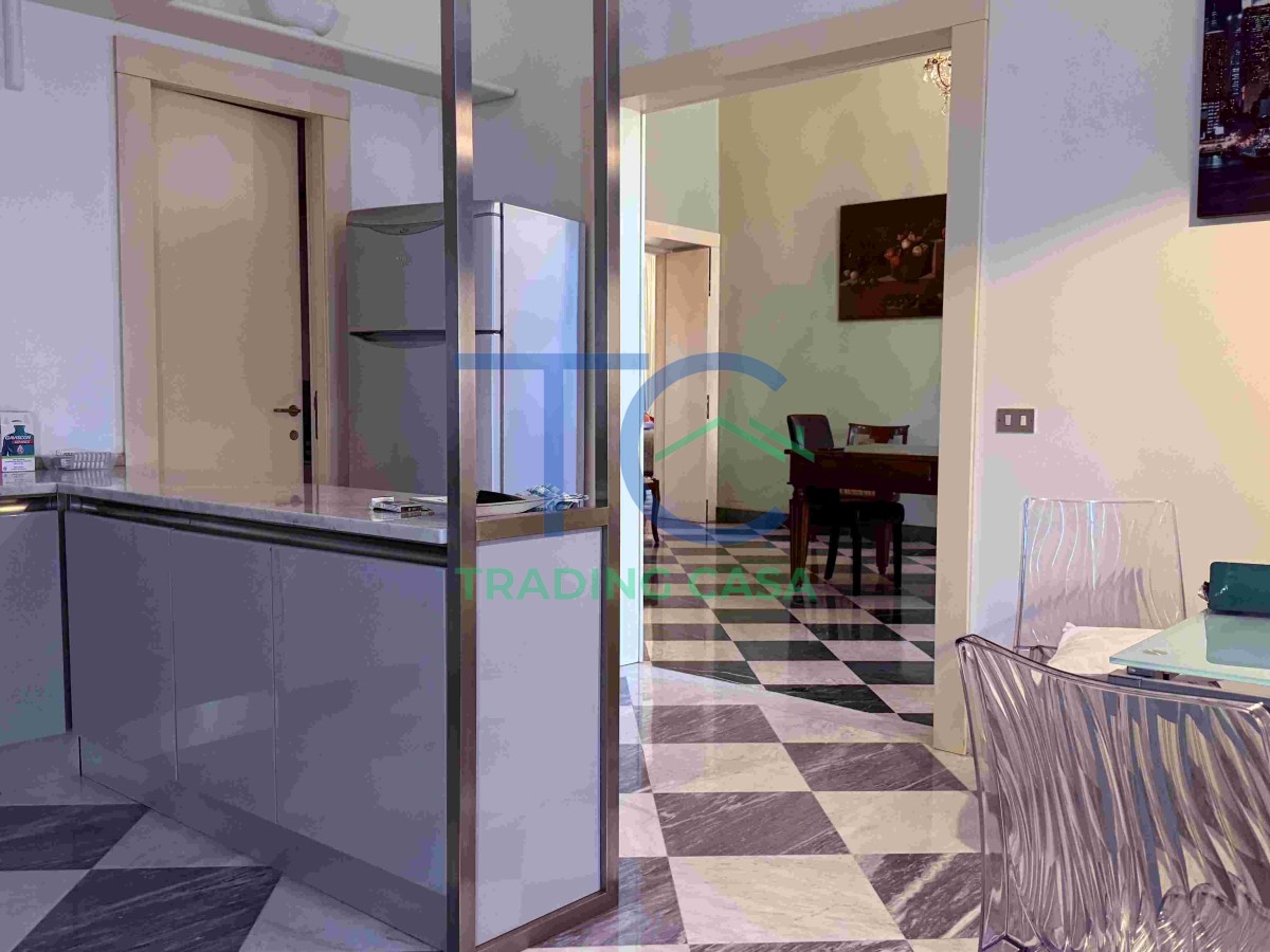 L’ingresso ti accoglie con una presenza scenica rara: 60 mq che non sono solo passaggio, ma anticipazione. La luce entra decisa dalle tre grandi finestre e accompagna lo sguardo lungo il corridoio, preparando quello che scoprirai poco dopo.