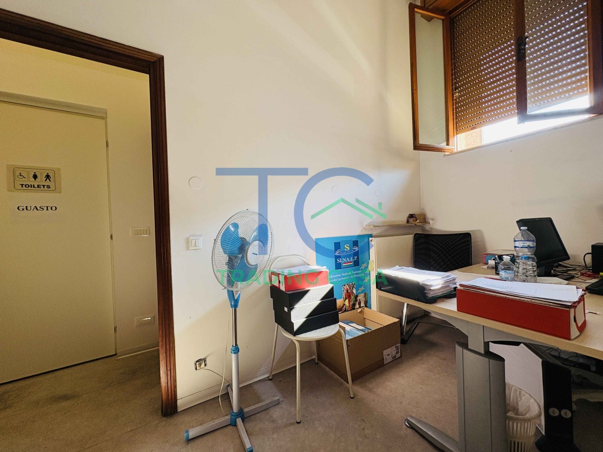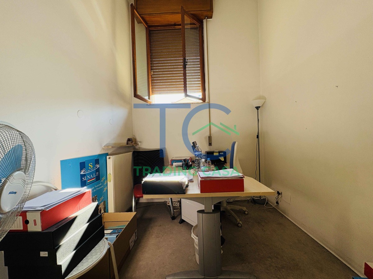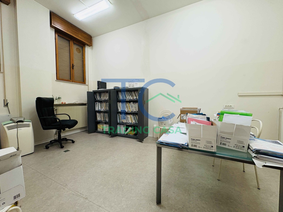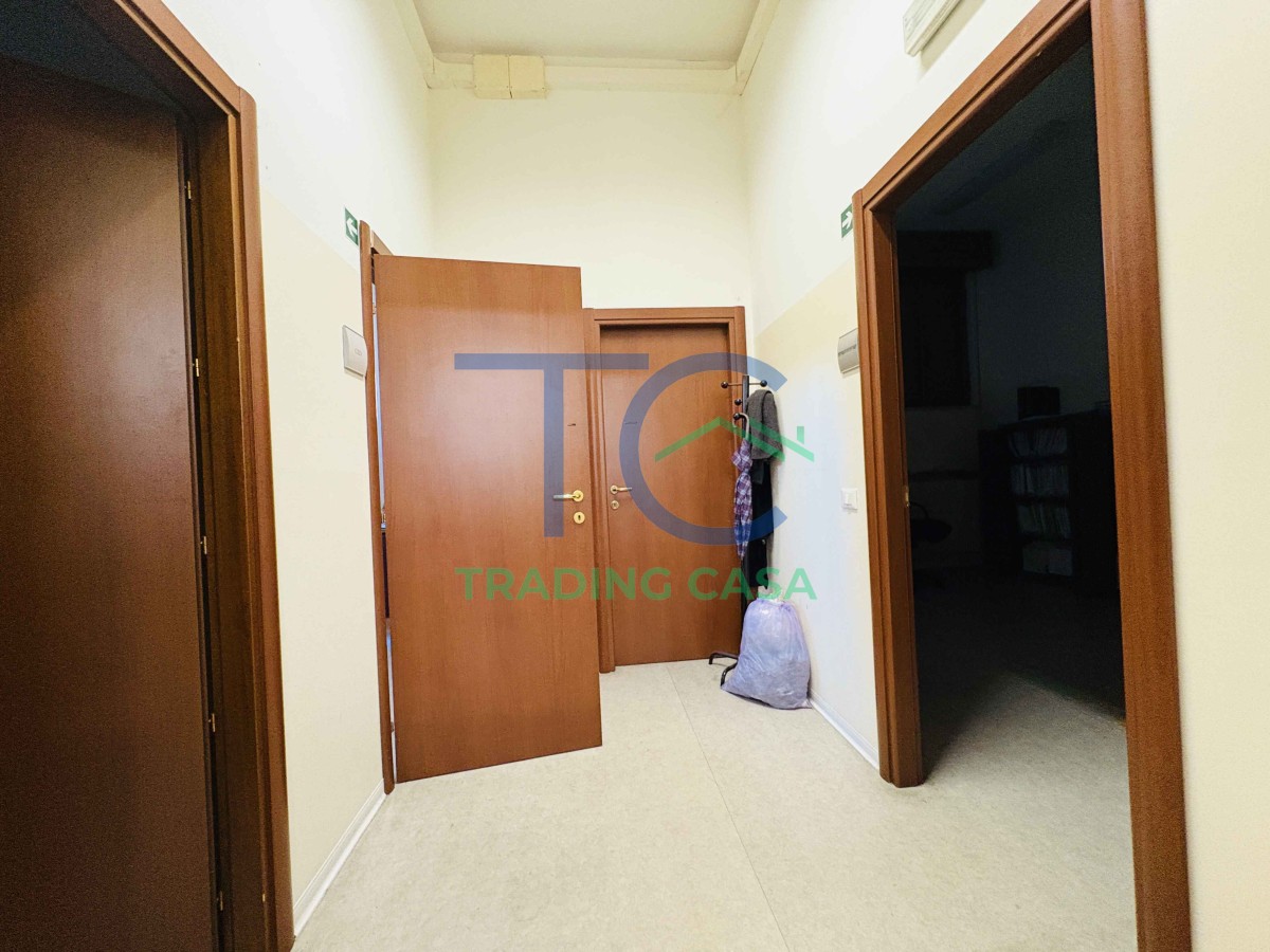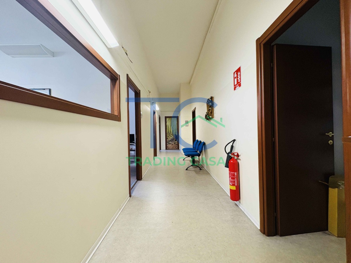 Appena varchi l’ingresso indipendente, percepisci subito una cosa: questo ambiente si adatta a te, non il contrario. Oggi è un ufficio organizzato con sette ambienti distinti, archivi funzionali e due servizi; domani può trasformarsi in qualcosa di completamente diverso, senza complicazioni.