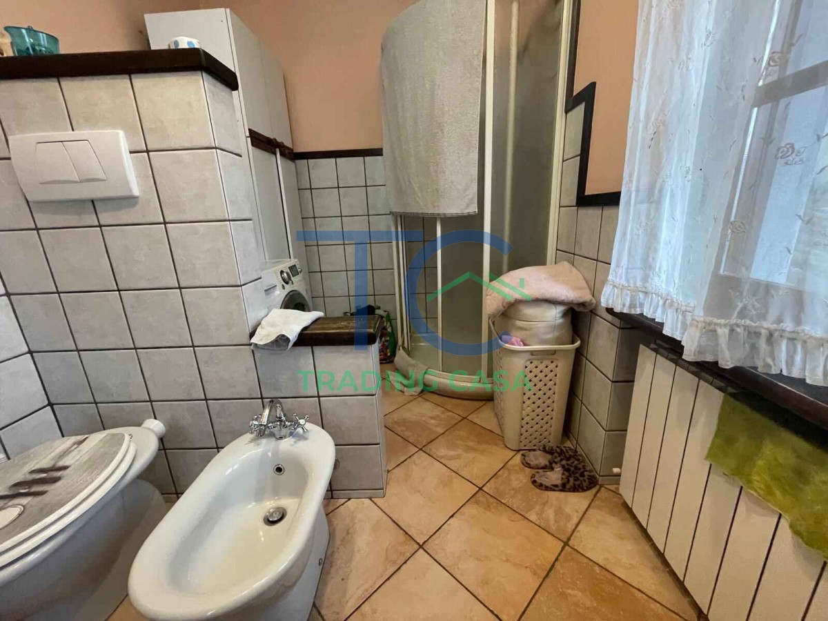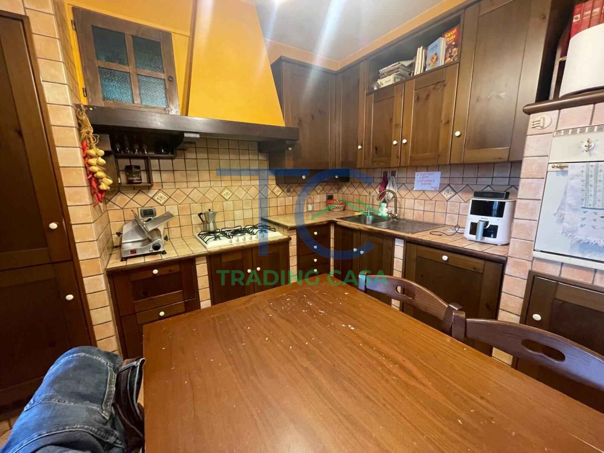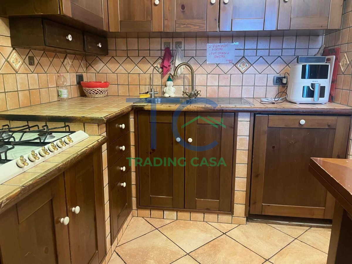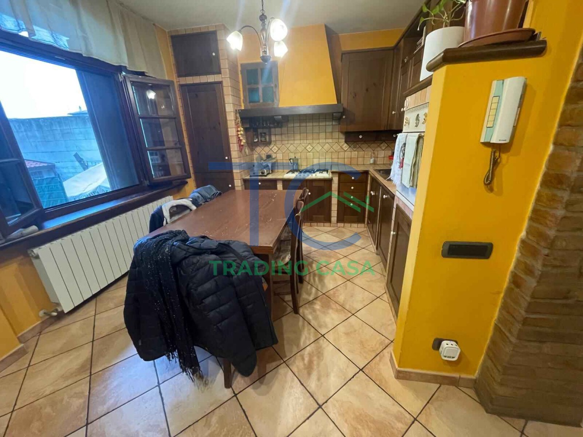 Al piano terra l’ingresso accompagna in un soggiorno separato dalla cucina abitabile, due ambienti distinti che permettono di vivere la casa in modo ordinato e funzionale. Qui puoi immaginare la luce che entra dalle finestre, le cene in famiglia, i momenti di relax sul divano mentre i bambini giocano. Il bagno completa il piano in modo comodo.